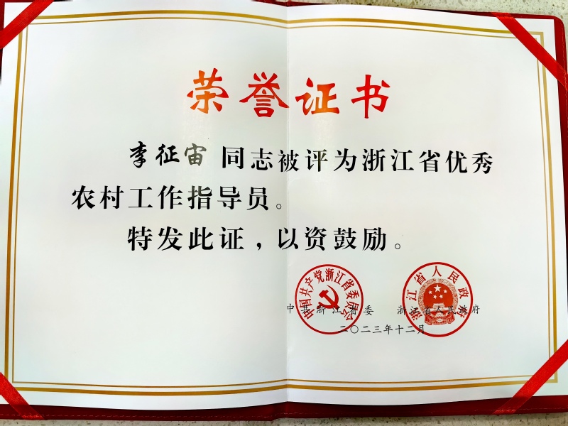 近日,中共浙江省委、浙江省人民政府最新联合印发的《关于表彰浙江省农村工作指导员先进单位和优秀农村工作指导员的通报》,我校教师李征宙同志获评“浙江省优秀农村工作指导员”称号。
