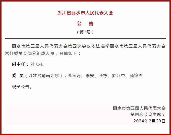 2月29日上午,丽水市第五届人民代表大会第四次会议胜利闭幕。会上,我校校长李安当选为丽水市人大常委会委员。