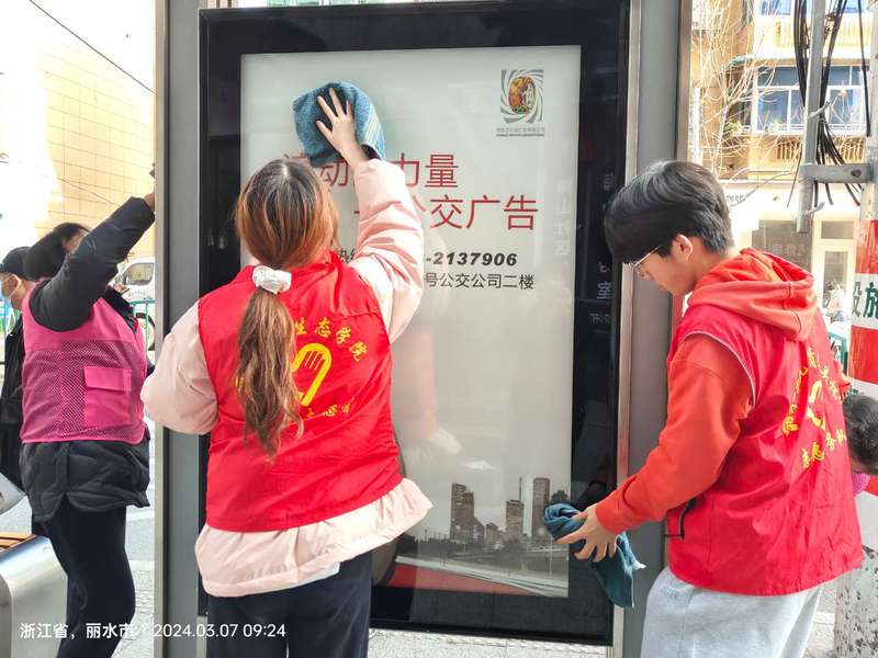 环境整治,温馨家园换新颜。为进一步改善社区居民的生活环境,生态学院志愿者们携手社区的小朋友们对社区周边的公交站台和楼道扶手进行了擦拭,清扫社区的卫生死角,针对公共区域内乱堆乱放的垃圾、破旧家具等进行统一集中清理。通过实际行动,让志愿者和小朋友们能够更好地理解志愿服务的意义,体验到帮助他人的快乐。