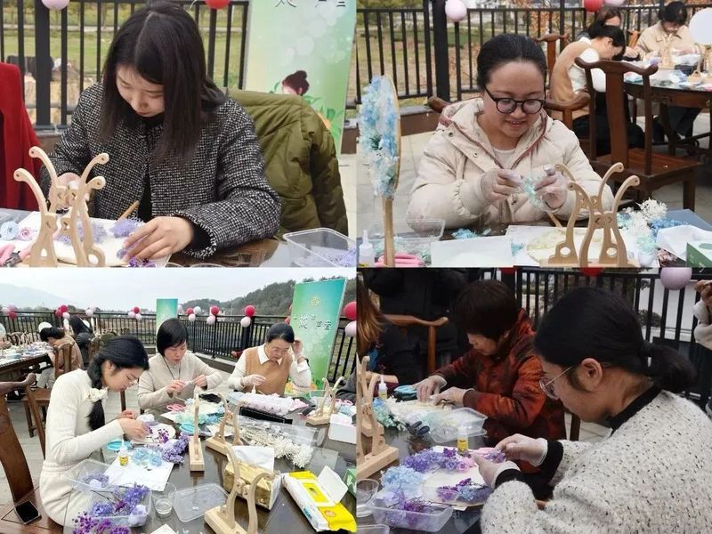 拈花拾趣,绽放“她魅力”。女性不仅是自己人生的策划者,更是美好生活的创造者。“制扇至美”,在节日里用永不凋谢的永生花亲手制作一把团扇,为自己送上一份特别的礼物。在制作现场,大家在花艺老师的指导下进行造型设计和色彩搭配,经过创作,一柄柄素扇变得花团锦簇,每一扇都别具风情、摇曳生辉,正如每一位女性,都是独立而闪光的存在。大家纷纷拿着自己的作品合影留念,定格这一份春日的美好。