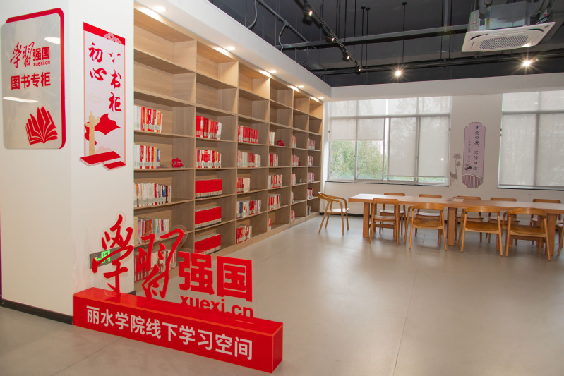 “学习强国”丽水学院线下学习空间,是丽水市第一家在高校落成的线下多功能学习体验馆,目前全市已建成8个“学习强国”线下体验空间。丽水学院线下空间设有学习空间、发布空间、研学空间、初心书柜等多个不同功能空间,能够为师生的理论学习、思想探讨、互动交流、成果展示提供服务平台,实现线上线下同频共振,青年与理论“双向奔赴”。同时,线下学习空间的打造推动“学习强国”学习平台从师生“指尖”到“身边”、从“线上”到“线下”,能够引导广大师生进一步增强“四个意识”、坚定“四个自信”,让习近平新时代中国特色社会主义思想在高校落地生根、开花结果。