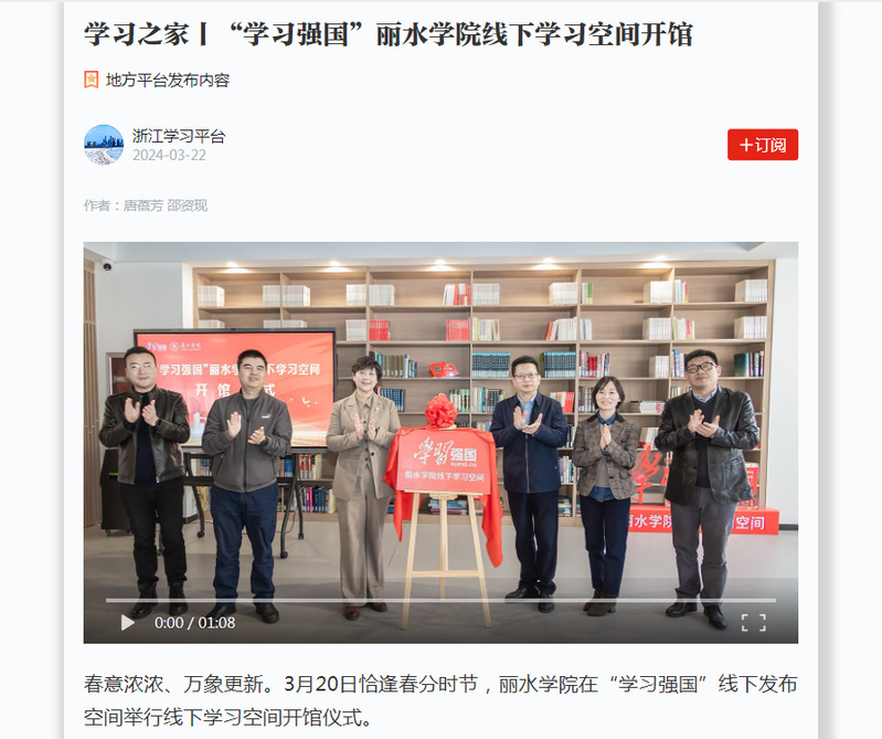 3月21日,“学习强国”浙江学习平台刊发了我校线下学习空间开馆的消息。