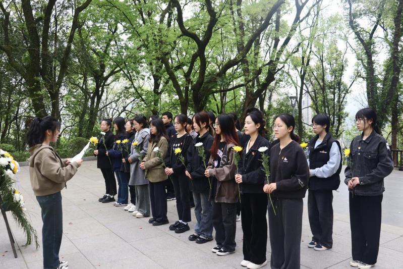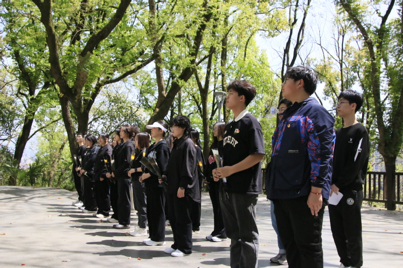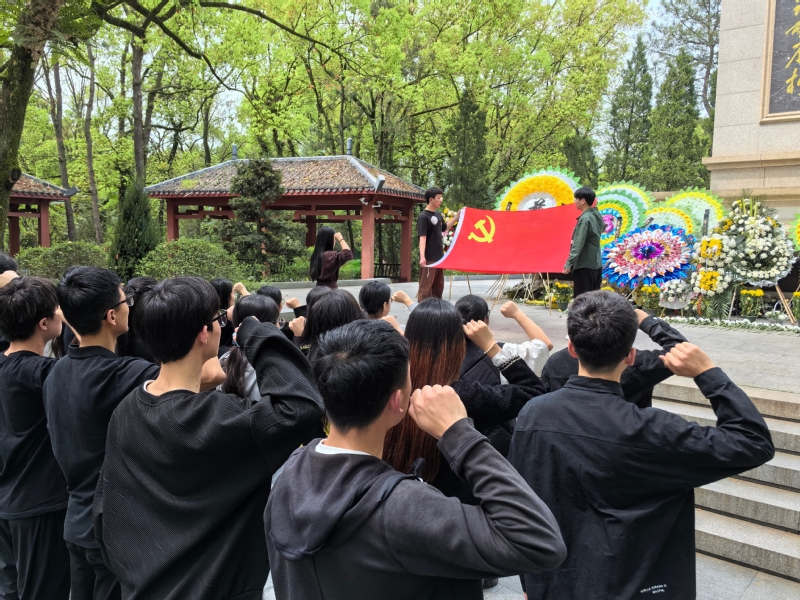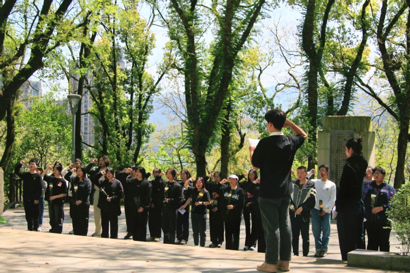 烈士陵园内,松柏笔直苍翠,分外肃穆宁静。在纪念碑前,同学们敬献花圈,鞠躬默哀,以鲜花表达无上崇敬,以静默寄托无限哀思。这里安放着革命先烈的骨灰,篆刻着革命先烈的姓名,“为国牺牲永垂不朽”八个大字赫然在目,同学们在此感怀革命志士的信仰、忠贞、崇高和不朽,为源远流长、坚韧不屈的民族精神而深深撼动。在学生党员的讲述下,同学们重温了浙西南挺进师的英勇事迹,深刻体会了中国共产党人对理想信念的坚守和艰苦奋斗、百折不挠的革命精神。大家纷纷表示,历史是最好的教科书,也是最好的清醒剂。青年学子应当铭记历史,自律自强,实干笃行,以浙西南革命精神为引领,以永做新时代“挺进师”的奋进姿态,不断开辟跨越式高质量发展新境界,用火热青春奋力谱写中国式现代化丽水新篇章。“人民为先,祖国至上,誓做栋梁,振兴中华……”祭扫活动在铿锵有力的宣誓声中结束。