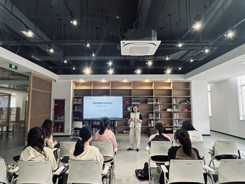 施燕薇指出,讲解员首先要明确好“四个身份”——政策讲解员、场馆讲解员、导游员、服务员,同时也要注意四个身份之间的灵活转换,增强应变能力。讲解员身份的多样性也要求着讲解员要具有超强的综合素质,流利的语言表达,强大的声音的表现力以及有亮点、有特色、有个性的讲解稿。她特别提醒同学们要深挖校史,不仅要熟练掌握校史馆版面上的内容,还要深入挖掘各专业、各景点背后的故事,不能只是照本宣科。她还以清风园为例,将廉政精神深植讲解中,为校园的各处各景赋予了新的时代内涵,形象地为成员们演示了既定线路的讲解技巧,给校史讲解提供了新思路。她强调,要将自己对丽院的情感带入其中,增强自己作为讲解员的不可替代性。