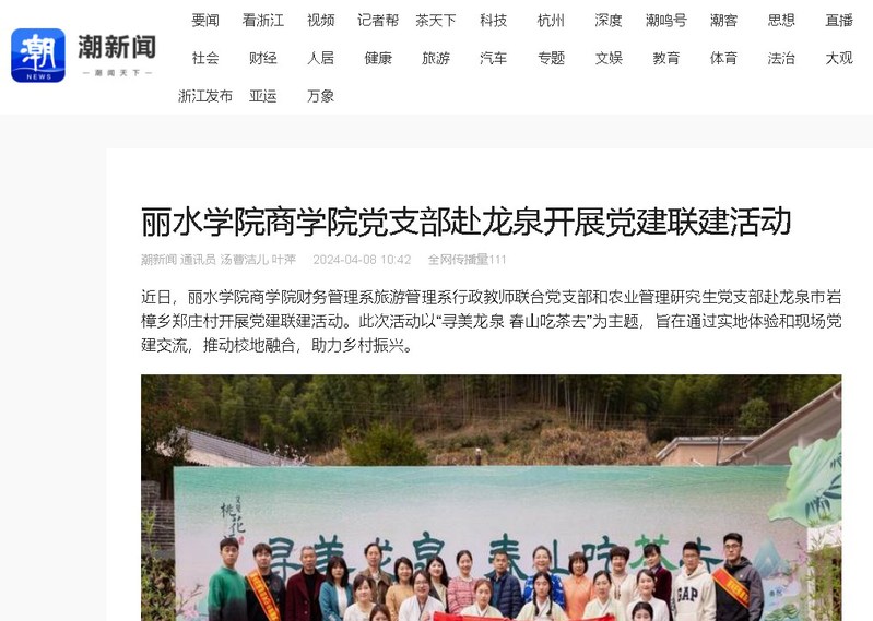4月8日,潮新闻发布了关于我校商学院党支部赴龙泉开展党建联建活动的消息。