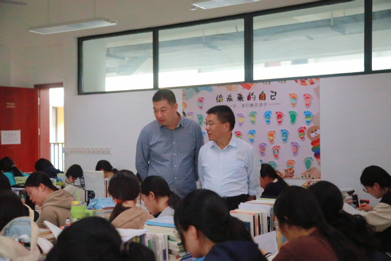 28日晚上7点,蒋黎红来到教学楼,了解学生晚自修学习情况,并和同学们亲切交流,仔细询问学生存在的困难问题,并希望同学们充分利用晚自习时间提升学习效率,营造良好的学习环境和氛围。