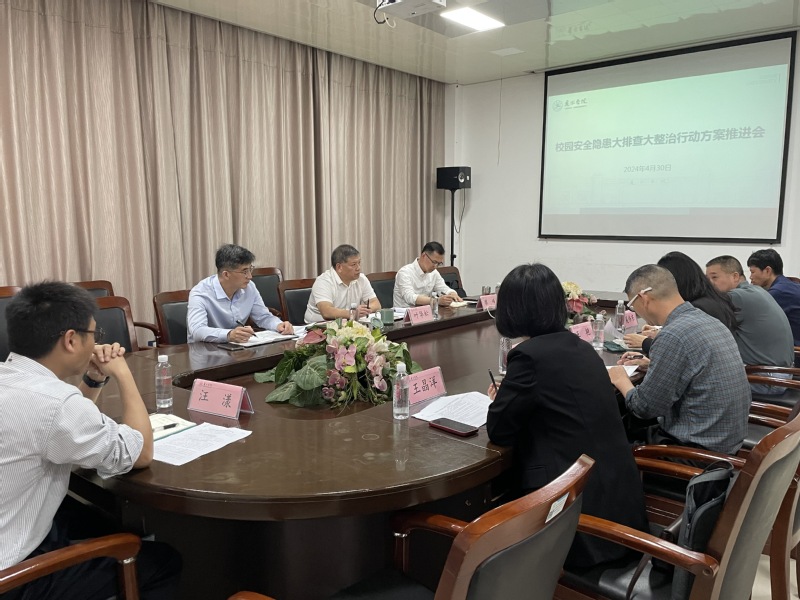 4月30日,我校在求是楼一楼会议室召开校园安全隐患大排查大整治行动推进会,校党委副书记叶华松,党委委员、宣传部(教师工作部)部长廖峰出席会议。