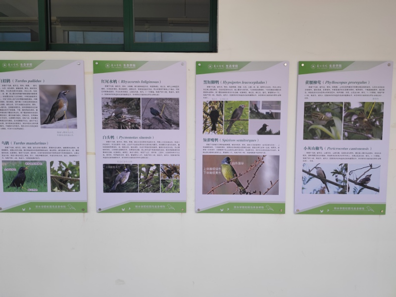 为庆祝学校升本20周年,日前,生态学院在致远楼建立生物多样性生态科普基地,向大家揭秘物种之谜以及展示生物多样性的瑰丽。学校升本以来,校园环境不断优化,林木葱郁,芳草如茵,已经成为较为完整的微型生态系统,鸟类品种多样,横跨各个纲目科属。生态学专业师生经过长期的观测研究,拍摄并记录了校园内多种鸟类,以供来访者观览。