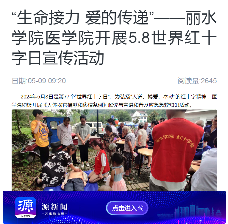 5月9日,源新闻刊发了我校医学院开展5.8世界红十字日宣传活动的消息。