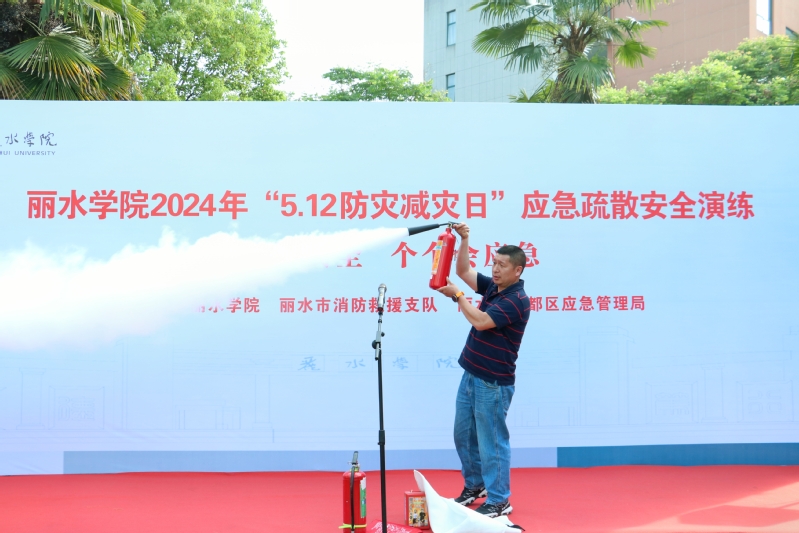 为切实提高师生的安全防范意识和应对地震、火灾、防恐等突发事件的能力,在我国第16个防灾减灾日来临之际,5月10日下午,我校在东区15幢学生公寓举行了应急疏散安全演练活动,校党委副书记叶华松担任总指挥。活动现场邀请了丽水市消防救援支队、丽水市莲都区应急管理局等10余个单位为广大师生现场宣讲各类安全知识,近500名师生参加演练活动。