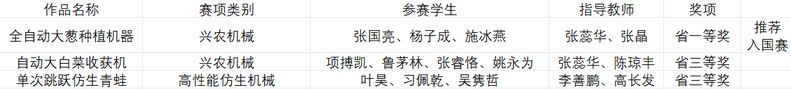 日前,浙江省第二十一届大学生机械设计竞赛暨第十一届全国大学生机械创新设计大赛选拔赛在杭州科技职业技术学院举行,我校工学院机械设计制造及其自动化专业学子张国亮、杨子成、施冰燕三位同学设计的“全自动大葱种植机器”(指导教师:张蕊华)在兴农机械赛项获一等奖并入围国赛,此外“自动大白菜收割机”“单次跳跃仿生蛙”两个项目荣获三等奖。