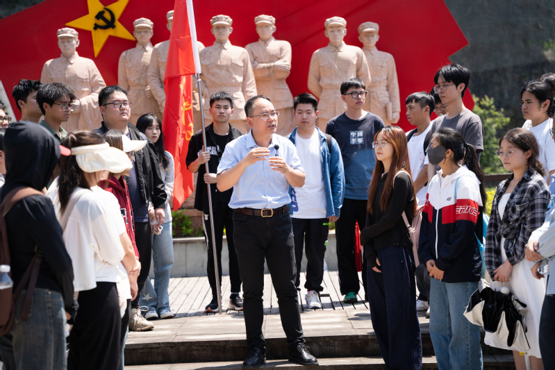 “任何一段革命历史,都有它独特的精神价值。忘记则意味着背叛,纪念是为了更好地传承。”在遂昌中国工农红军挺进师纪念馆前,郑海友老师以挺进师的组建、扩大,植根人民、创建楔入敌人腹地的红色堡垒为主线,详细讲述了刘英、粟裕带领红军展开斗争的艰辛历程,引起了学生的强烈共鸣。师生沿着昔日红军路,用脚步丈量革命先辈的红色足迹,用心灵感悟那段追寻真理、燃烧理想、遍撒革命火种的赤忱初心。学生唐鑫婷动情地说道:“今日,我们追随红军昔日的脚步,踏过一段又一段崎岖山路,不仅是为了延续革命的光辉,更是为了赓续红色血脉,继承浙西南革命精神。我们坚守忠诚使命、求是挺进、根植人民的信念,让红色基因代代相传,永不磨灭。”