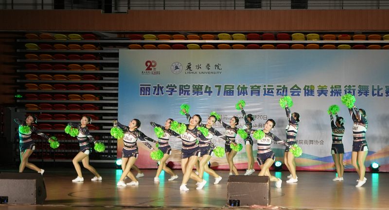 比赛现场上,18支参赛队依次出场比赛,选手们面带微笑、抬头、举手、半蹲、旋转、跳跃……动作整齐划一,时而刚毅,时而优美,不断变换队形,舒展身姿。选手们的举手投足间充满了自信与独特的魅力,呈现出一场力与美的视觉盛宴,展现了丽院学子奋发向上的精神面貌和阳光、活泼、健康、自信的风采。