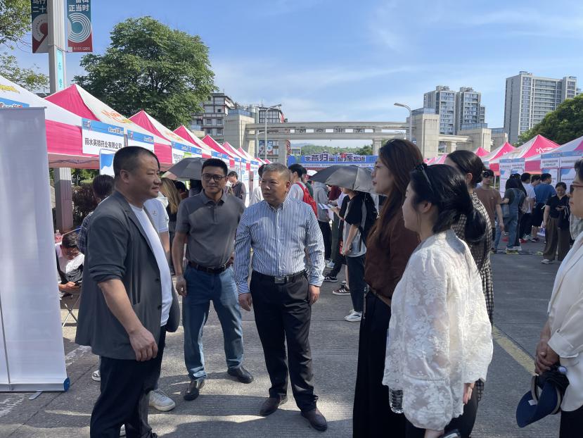 日前,由我校、丽水市区两级人社部门和莲都区总工会等联合举办的大型招聘会举行。此次招聘会吸引了来自宁波、温州以及丽水本地近200家用人单位参与,提供岗位2400多个。校党委副书记叶华松、莲都区人社局局长梁永光等在现场指导工作,并就下一步合作进行洽谈。