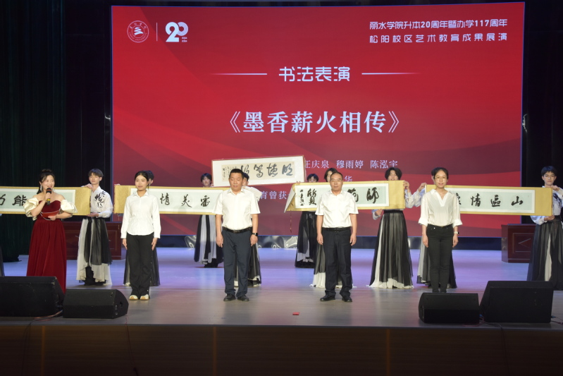 整场晚会,掌声、喝彩声不断,现场充满着欢声笑语,洋溢着喜庆祥和,凝聚着激情与豪迈,师生同庆,其乐融融。多彩的节目充分展示出松阳校区学子怀抱青春理想、锐意进取、开拓创新的艺术才华。松阳校区被称为丽水艺术教育的摇篮,校友中有省级以上书法家协会、美术协会、音乐协会会员百余人。此次展演是一次总结与汇报,更是校区艺术教育成果的缩影,见证了校区师生的成长。松阳校区全体师生将继续秉承艺术教育的优良传统,守正创新,提高校区人才培养工作,进一步带动校区建设与发展,为学校增光添彩。