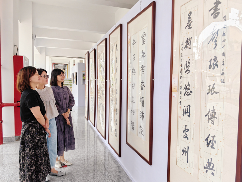 翰墨飘香显传承,妙手丹青颂芳华。本次书画展得到了广大在校师生和优秀校友的积极响应和热情支持,经过前期征稿和专家审稿,共展出书画作品近60幅。作品主题鲜明、立意深刻,用笔墨书画围绕学校历史、校园文化、专业特色等方面进行创作,一幅幅书法作品或笔走龙蛇,或泼墨如水,或细致入微,或大气磅礴;绘画作品童真童趣、技艺精湛,展现了校区学前教育专业建设的特色;摄影作品历史时代感浓厚,唤醒了师生的美好回忆。