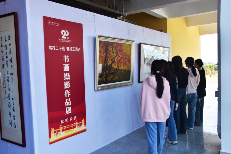 笃行二十载,奋楫正当时。为庆祝学校升本20周年,近日,松阳校区庆祝升本20周年书画摄影作品展在1幢教学楼一楼正式开展。