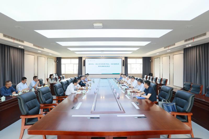 6月3日上午,副市长、市公安局党委书记、局长董智武,市公安局常务副局长丁文伟,市公安局党委委员、莲都区副区长、公安分局局长潜伟峰一行来我校调研。校党委书记李俊杰,校长李安,校党委副书记叶华松,校党委委员、宣传部(教师工作部)部长廖峰接待了董智武一行。