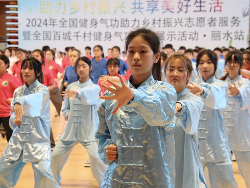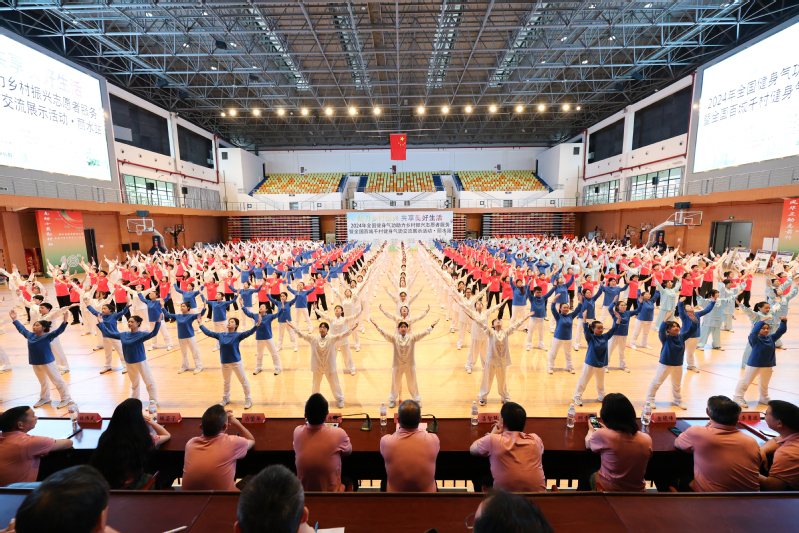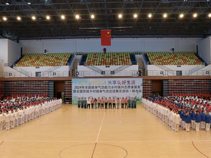 6月2日上午,由我校和丽水市委政法委、丽水市体育服务发展中心、丽水市体育总会主办的2024年全国健身气功助力乡村振兴志愿服务暨百城千村健身气功交流展示活动在学校体育馆举行。我校党委副书记叶华松、丽水市委政法委副书记毛伟林、丽水市体育总会主席潘智慧、丽水市体育发展服务中心党组成员、体育总会专职副主席马莹华等出席展示活动。