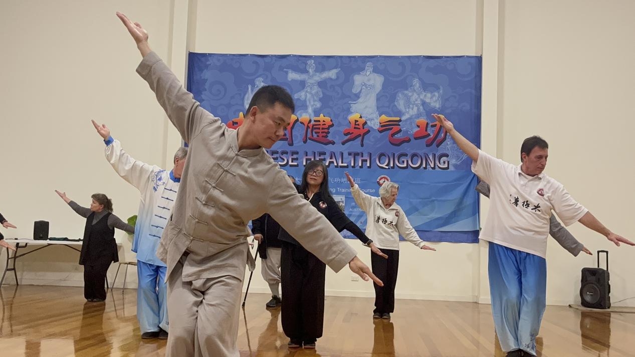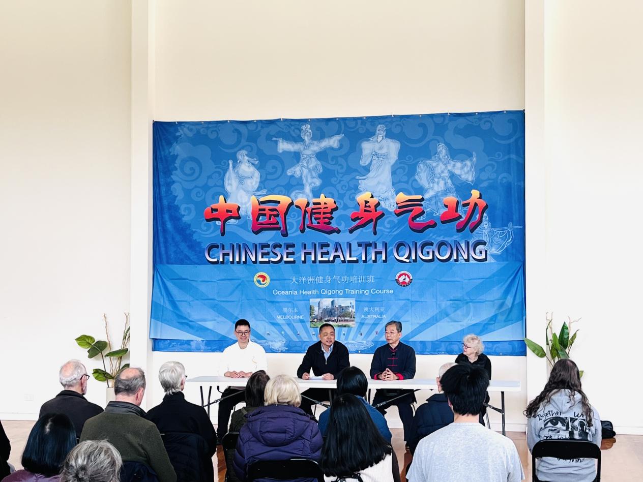 中国健身气功代表团来到澳大利亚太极学院,与当地70余名健身气功爱好者共同见证了2024年“一带一路”健身气功民心通大讲堂闭幕仪式。仪式上,晁胜杰在开场时演奏古琴名曲《平沙落雁》,《健身气功习练中的三调合一》专题讲座,通过《庄子·逍遥游》中的大鹏“海运将徙于南冥”的故事引入,深入浅出地讲述了中国传统文化中“身心气合一”的生命观,并用不同的健身气功动作带领现场朋友亲身感受“三调”的具体内涵与操作方法。