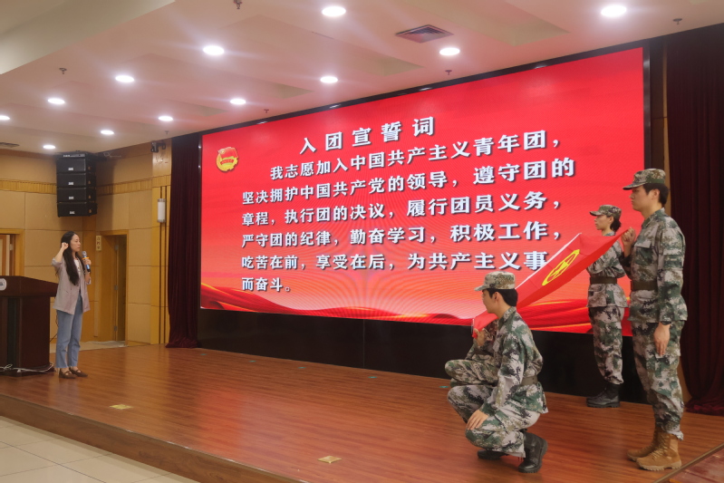 入团仪式上宣读了新团员名单。新团员、优秀团员代表分别作表态发言。学校老团员代表表演了诗朗诵《我们的青春》,并为新发展团员代表佩戴团徽。