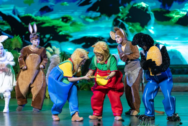 据介绍,《小松狮和金钥匙》剧本、歌曲、舞蹈皆为原创,为确保剧目在艺术性和教育性上的精准表达,松阳校区特别聘请浙江省文化馆研究馆员、著名编剧施莉萌担任总编剧,国家一级演员、梅花奖得主吴燕琳担任艺术指导,以此为基础,组建了“专家团队+校内团队”构成的主创团队,从编、导、演对剧目进行全方位打造。栩栩如生的角色形象造型、写实的故事场景、多媒体视觉元素,呈现出充满奇幻色彩的舞台空间。