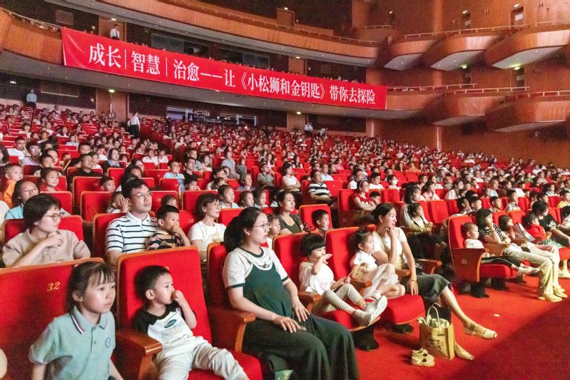 “剧情紧张刺激,演员的表现力强,现场氛围也很好,我家孩子看得很认真。”6月14日晚,莲都区的周女士和孩子在共同观看完我校松阳校区打造的大型原创儿童剧《小松狮和金钥匙》演出后,连连夸赞道。