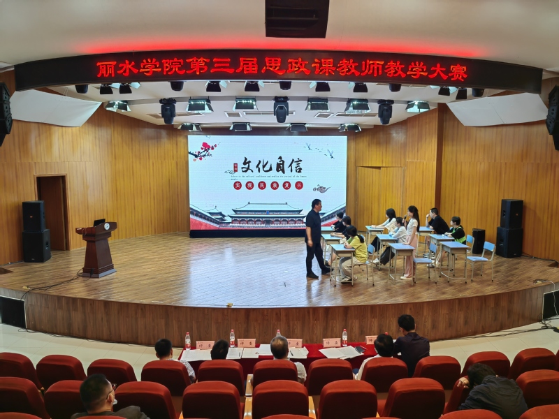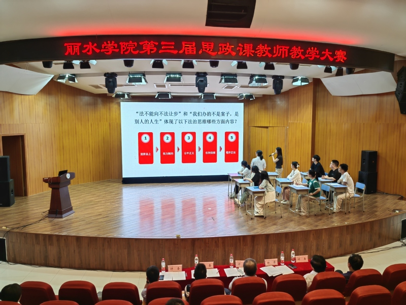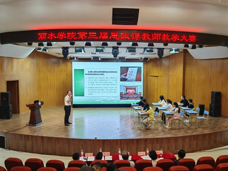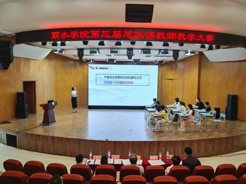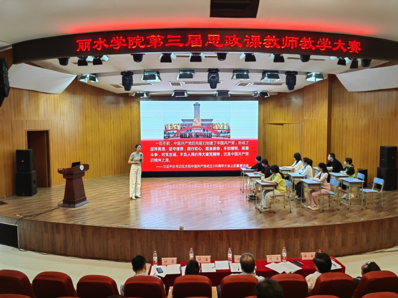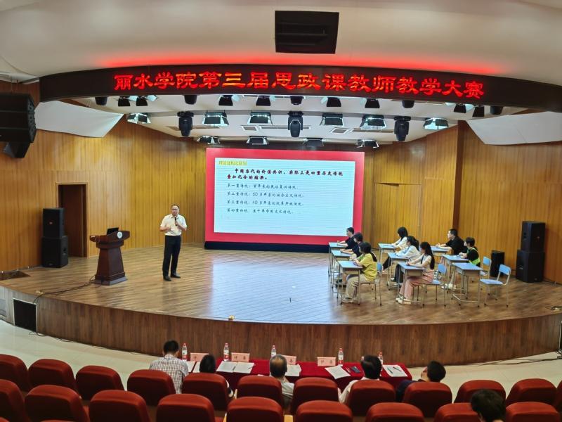 为深入学习贯彻习近平新时代中国特色社会主义思想和党的二十大精神,进一步推动思政课改革创新,加强思政课教师素质建设,办好新时代高校思政课,6月15日,我校在音乐厅举行第三届思政课教师教学大赛,校党委副书记叶华松、丽水市委宣传部理论教育处处长梅益蔚、丽水市委党校党史党建教研室张永忠和丽水市教育教学研究院教研员章根平等担任本次比赛的评委。