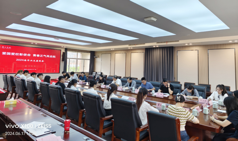 6月17日,学校2024届毕业生座谈会在求是楼五楼会议室召开,校党委副书记叶华松,党委委员、宣传部(教师工作部)部长廖峰出席座谈会。