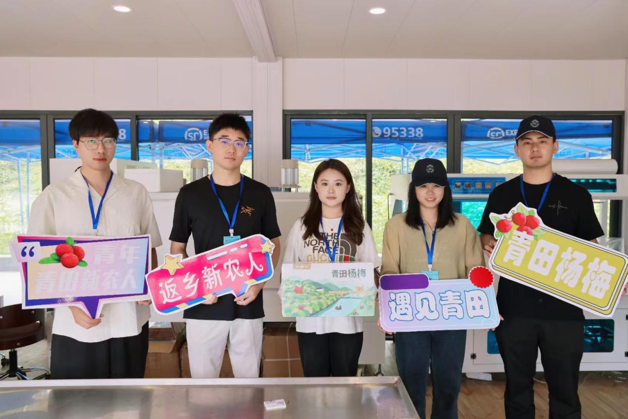 在青田直播现场,商学院农业管理专业研究生与当地的网红达人合作,共同为青田杨梅打call。直播间内气氛热烈,观众们纷纷下单购买,两个多小时的直播,成功助销了600多单青田杨梅。
