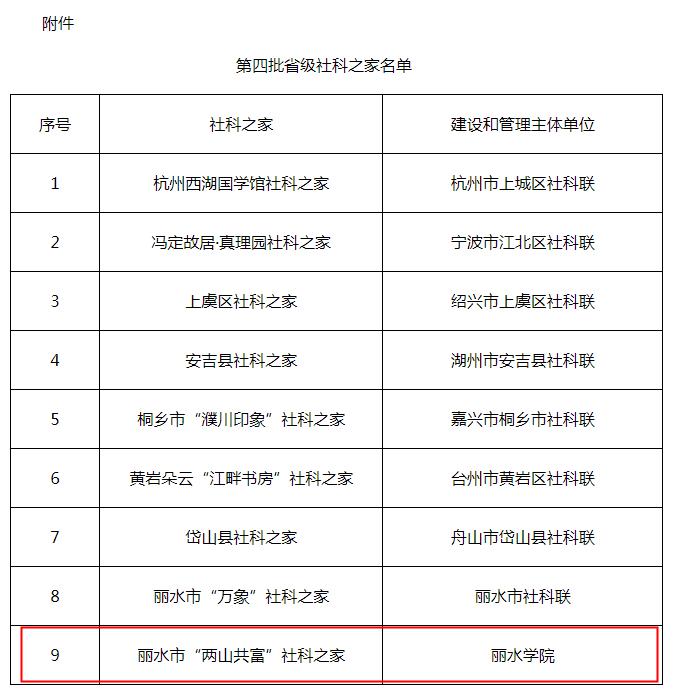 7月2日,浙江省社科联公布了第四批省级社科之家的名单,由我校中国(丽水)两山学院申报的“两山共富”社科之家”成功入选。