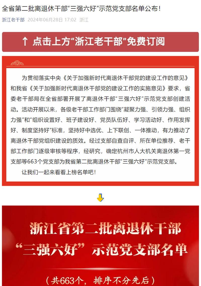 近日,浙江省委老干部局公布了全省第二批离退休干部“三强六好”示范党支部,我校离退休教职工第二党支部和第三党支部成功入选。这是继我校离退休教职工第五党支部获得首批“三强六好”示范党支部之后,再一次获得表彰。
