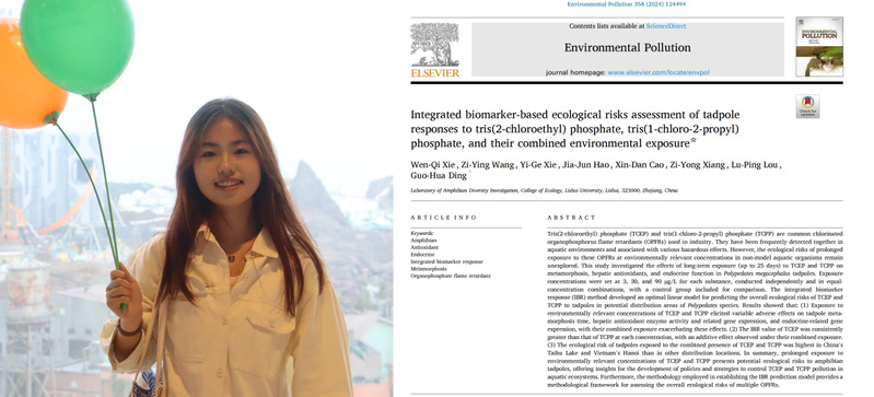 近日,我校生态学专业21级本科生谢温琦以第一作者撰写题为“Integrated biomarker-based ecological risksassessment of tadpole responses to tris(2-chloroethyl) phosphate,tris(1-chloro-2-propyl) phosphate, and their combined environmental exposure”研究论文,由锡耶纳大学(意大利)的Maria Cristina Fossi教授推荐接收,在国际环境类知名期刊《Environmental Pollution》在线发表。生态学专业学生谢怡格、郝嘉俊、曹馨丹、项姿勇和楼璐萍参与了本项研究。