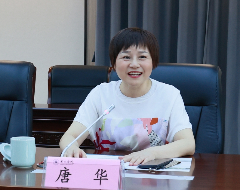 王赳对唐华一行的到来表示欢迎。她从历史沿革、办学特色、学科科研、地方服务等方面简要介绍了学校基本情况。她表示,学校依托丽水的红色资源、民族特色、侨乡优势、文化禀赋等,形成了一些特色办学优势。但学校仍处于发展爬坡阶段,还需要不断改革创新,奋力拼搏。湖州学院作为新建本科高校,发展势头良好,希望两校加强交流与沟通,共同促进学校高质量发展。