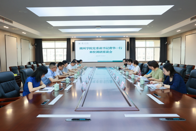 7月23日下午,湖州学院党委副书记唐华一行来校调研,我校党委副书记王赳,党委委员、宣传部(教师工作部)廖峰陪同调研。
