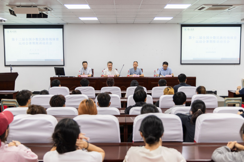 8月8日,为备战第十二届全国少数民族传统体育运动会,我校召开了暑期集训动员大会。市委统战部副部长、民宗局局长管君友,我校副校长胡锋吉,党委委员、组织部部长、统战部部长赵卫川出席会议,各项目运动员、教练员和工作人员参加会议。