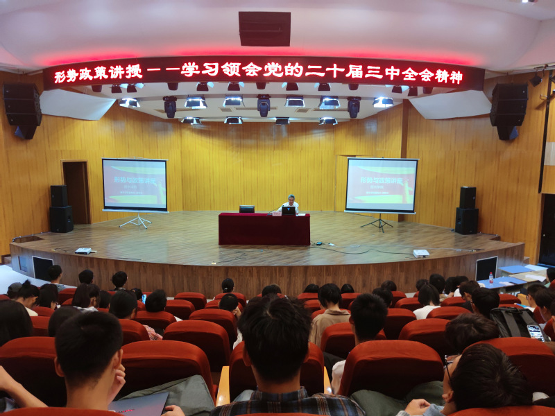 为深入学习贯彻党的二十届三中全会精神,聚焦大学生关注的国内外形势与社会热点,9月24日,副校长胡锋吉在音乐厅为医学院学子讲授题为“进一步全面深化改革,开辟中国式现代化广阔前景”的形势与政策课。