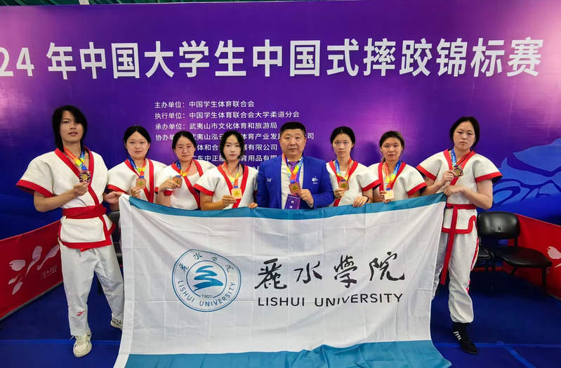 近日,由中国学生体育联合会主办的2024年中国大学生中国式摔跤锦标赛在福建省武夷山市体育馆举行,我校七名参赛队员在教练韩长良的带领下均获得名次,其中毛逸雯、何静怡、李艳、赵佳怡四位同学获得第三名。
