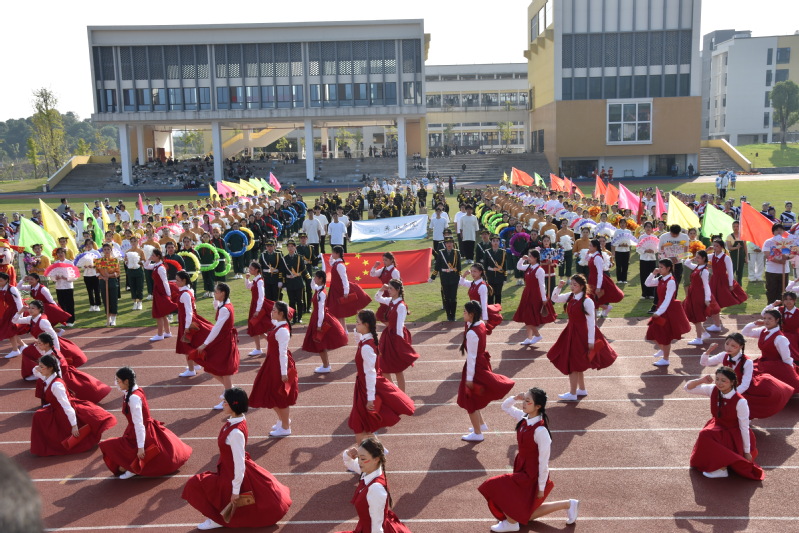 10月23日,松阳校区第47届综合运动会开幕,副校长蒋黎红出席开幕式。运动会开幕式伴随着激昂的《运动员进行曲》正式开始,仪仗队员护拥着五星红旗和校旗健步走入会场。管乐队、五环队、彩球队、彩扇队、鲜花队、彩旗队等方阵队依次走过主席台。缤纷旗帜高高飘扬,鲜艳花朵绚丽多彩,铿锵步伐坚定有力,运动员方阵,精神抖擞,迎着朝阳,展现了丽院莘莘学子特有的朝气、自信与热情。