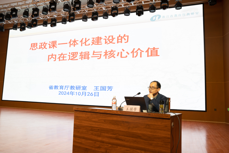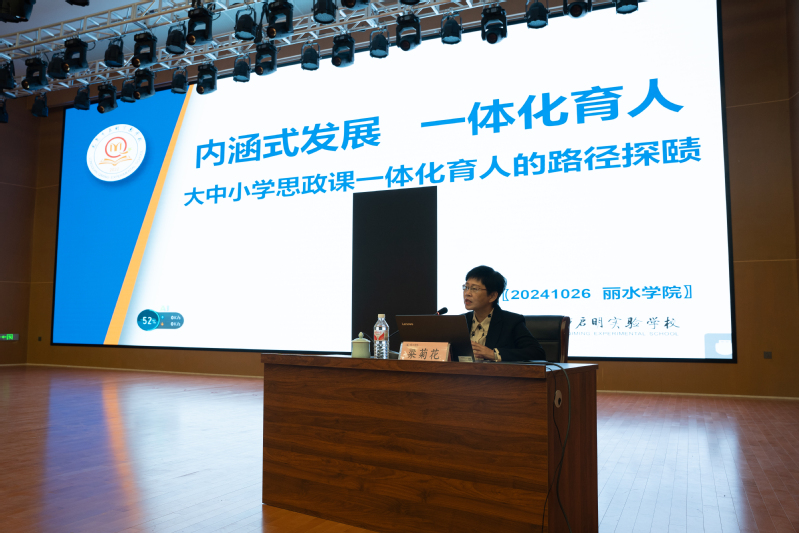 专题讲座环节,浙江理工大学马克思主义学院副院长肖香龙教授,省教育厅教研室正高级政治教研员、省特级教师王国芳,龙泉市启明实验学校副校长、省特级教师梁菊花,杭州市大成实验学校副校长潘建平、湖州市吴兴区思政教研员杨继明等5位专家,为学员们作了专题辅导报告,从多个维度,为丽水市大中小学思想政治教育一体化建设建言献策,廓清了推进大中小思政一体化推进过程中的理论和实践难点、盲点。