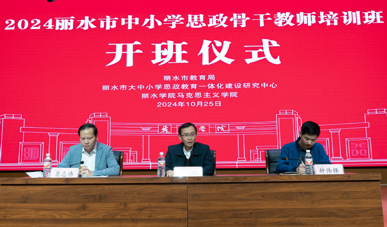 为贯彻习近平总书记关于思政课建设的重要指示,落实党的二十届三中全会关于“完善立德树人机制,推进大中小学思政课一体化改革创新”的要求,10月25日至27日,受丽水市教育局委托,由丽水市大中小学思政教育一体化建设研究中心、马克思主义学院承办的全市中小学思政骨干教师培训班在我校举行,我校党委委员、宣传部部长廖峰出席开班仪式,来自各县(市、区)91名中小学思政课骨干教师参加了培训。
