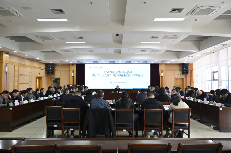 3月19日上午, 2025年度综合考核暨“十五五”规划编制工作部署会在图书馆九楼两山报告厅召开。会议重点部署“十五五”规划编制工作,通报2024年省、市考核结果,并就落实2025年度考核目标任务进行专题研讨。党委书记李俊杰等全体校领导班子成员出席会议,各职能部门(直属单位)主要负责人、二级学院党政负责人列席,会议由党委副书记王赳主持。