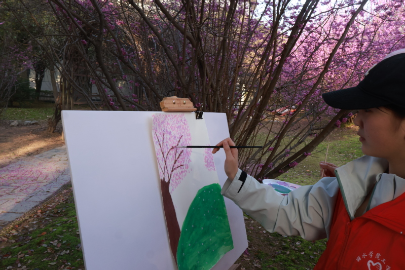 同学们即兴作画,用笔触勾勒出眼前的美景。一位参加活动的同学说道,“当我们走进自然,亲近自然,并用自己的双手去呵护自然时,我们才会真正感受到生命的美好。”