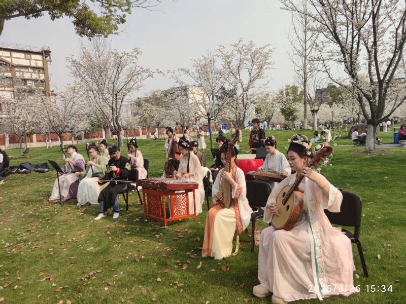 在这场春日盛宴的之中,除了一幅幅唯美的画卷,还有音乐学院师生连续数日的默默付出。开幕式当天,现场设置了包括万象初绽、指筝溯光、英华豪情、千峰翠色等九个舞台点位,其中一半以上的节目均有音乐学院的师生参与,他们为市民游客带来了舞蹈、民乐等精彩的表演,让市民游客在饱览花海美景之外,也一睹音乐艺术与舞蹈艺术之美,多“美”融合。