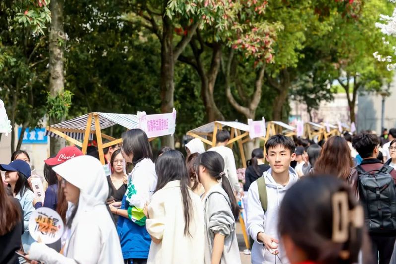 春风送暖,花海如潮,3月26日,学校在樱才园举办“万象未来 理乐共鸣”2025年“浪漫樱花”音乐会暨社团文化展活动。校园内樱花竞相绽放,粉色花瓣如云似霞,置身花海,宛如打开了春天专属滤镜,吸引了众多师生和市民前来赏花踏青。