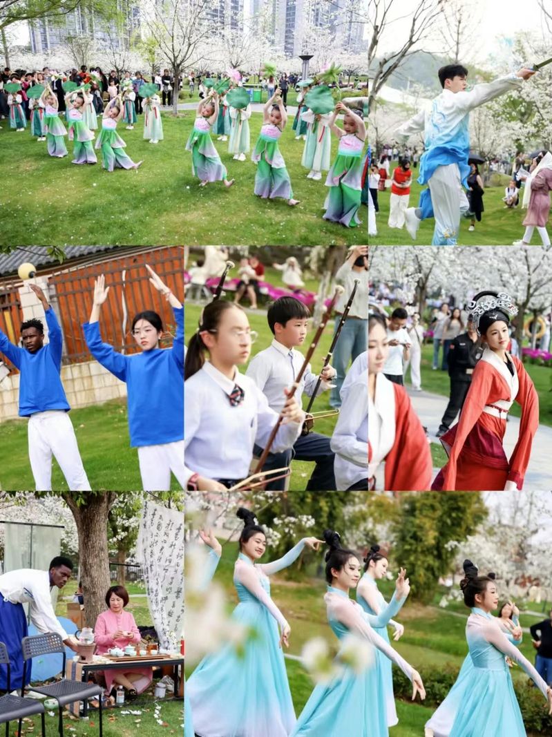 此次活动联合了丽水市城西学校、丽水学院附属城北实验小学等单位,是践行大中小思政教育一体化的重要内容。“樱趣同欢”樱花游园,“浪漫樱花”音乐会,“樱舞飞扬”社团风采展示等活动异彩纷呈。活动现场热闹非凡,小朋友们琵琶、二胡的精彩演奏,声情并茂的诗歌朗诵,大学生的音乐、舞蹈、健身气功、舞剑等表演,各类学生社团互动体验和文艺表演让市民沉浸其中,拍照打卡、品尝美食、参与游戏,微风拂过,落英缤纷,游人的笑语与花香一同在春风中荡漾。