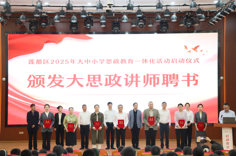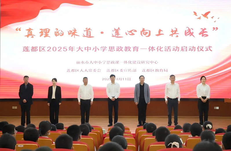 4月11日上午,莲都区2025年大中小学思政教育一体化活动启动仪式在莲都外国语学校报告厅举行,我校马克思主义学院负责人和思政教师代表参加启动仪式。