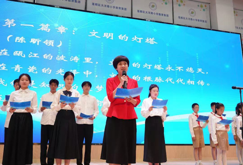 由我校语委精心策划的千人诵读倡议将活动推向高潮。教师教育学院陈昕教授携领读团队,带领现场千名学子齐声诵读。这场跨越年龄的集体诵读,既是对“全民阅读”理念的生动诠释,更展现了新时代青少年传承文明、追求卓越的精神风貌。