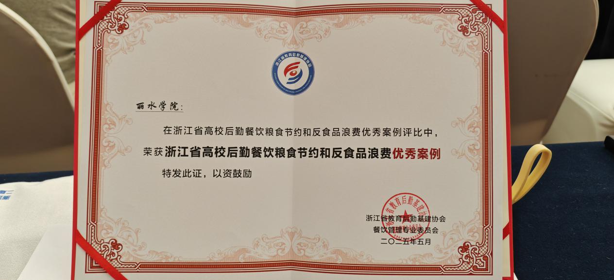 近日,在浙江省高校后勤餐饮粮食节约和反食品浪费优秀案例评比中,我校凭借出色的举措和显著成效,荣获“浙江省高校后勤餐饮粮食节约和反食品浪费优秀案例”称号。