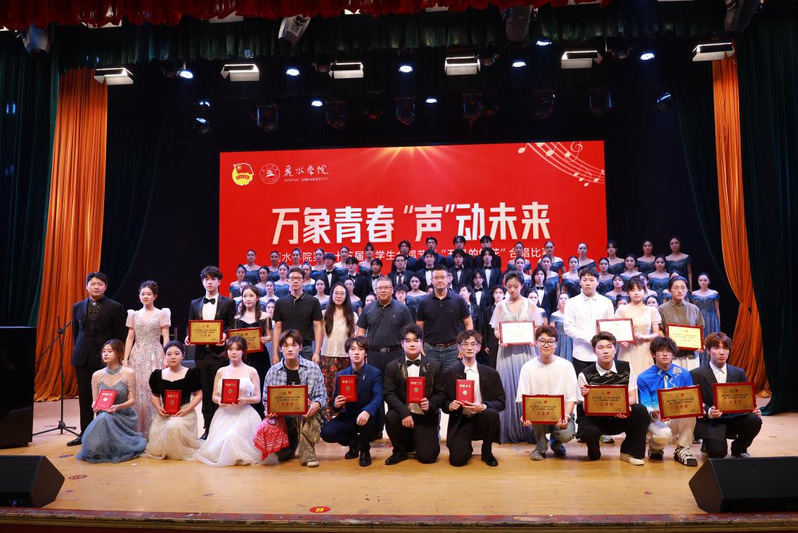 比赛现场,11支师生代表队依次登场,以歌声诠释青春的风采与力量。松阳校区带来歌曲《烽烟淬肝胆》和《长歌共天涯》,循着旋律叩开金庸笔下的武侠江湖,在荡气回肠的侠骨中重溯热血岁月;人文学院带来歌曲《深笑》和《紫荆花盛开》,表达了对祖国的热爱与对民族未来的美好憧憬;教师教育学院合唱的歌曲《无名的人》与《寸心》,歌声以细腻声线描绘万千星辰微光,让赤子之心在时代洪钟里共振回响。整场赛事高潮迭起,《领航》、《敕勒歌》、《飞云之下》等歌曲演绎,将丽院青年在新时代浪潮中奔涌的激情与活力诠释得淋漓尽致。